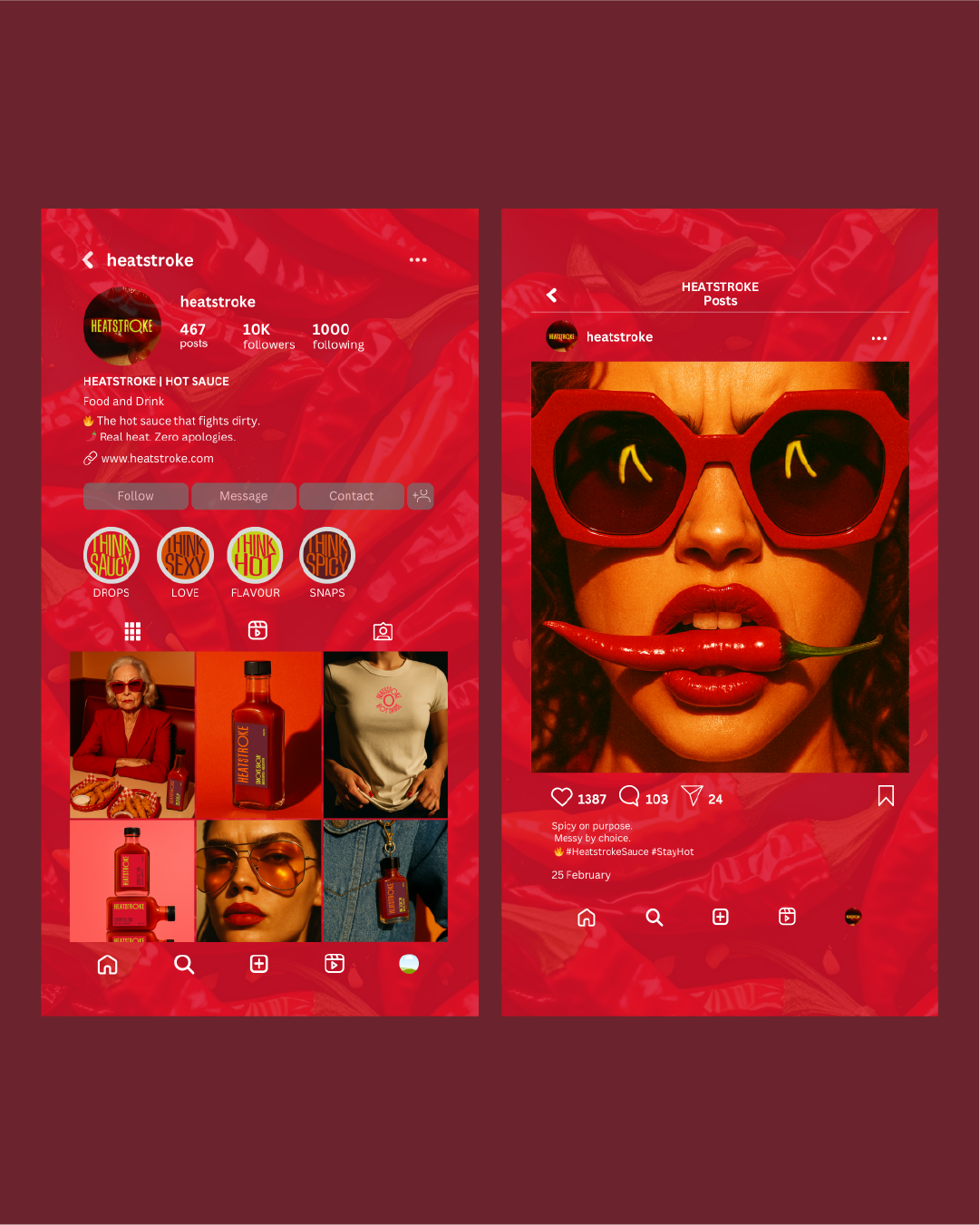 Heatstroke now stands out on shelves and in feeds — looking as spicy as it tastes. The brand invites customers to play, pose, and pour with confidence, building an audience of loyal fans who love to be seen with it.